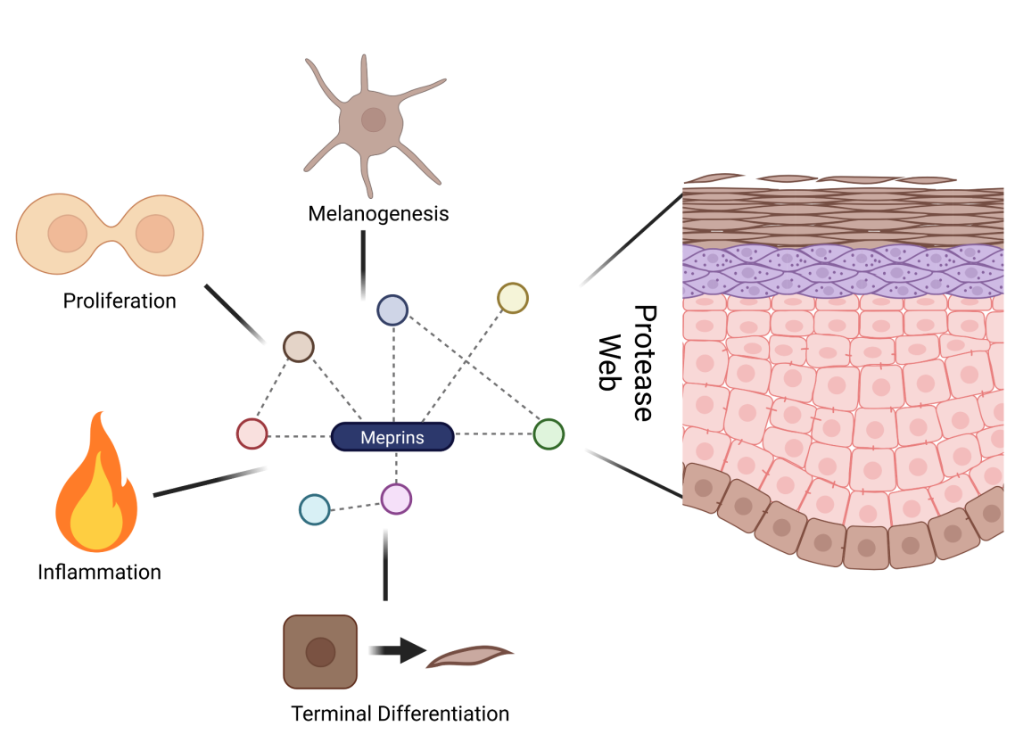 In different mouse models and human tissue samples, we observed a proteolytic interplay that contributes to keratinocyte differentation and dermal collagen maturation. Current work points toward a systemic immunological function of meprin alpha associated with SIRS.