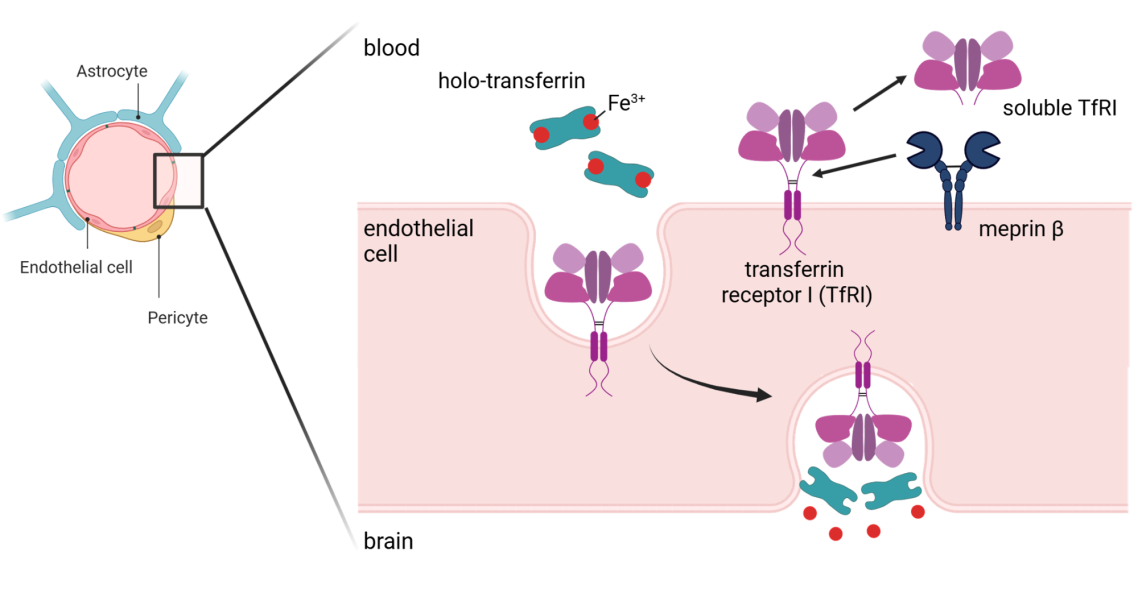 We and others observed altered iron levels in Mep1b knock-out mice compared to wildtype animals. Employing N-terminomics we identified the transferrin receptor I (TfRI) as a substrate for meprin β, which may be the cause for the different iron concentrations in blood.